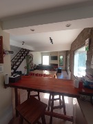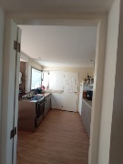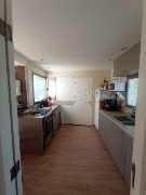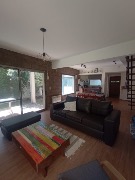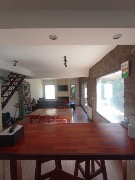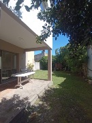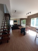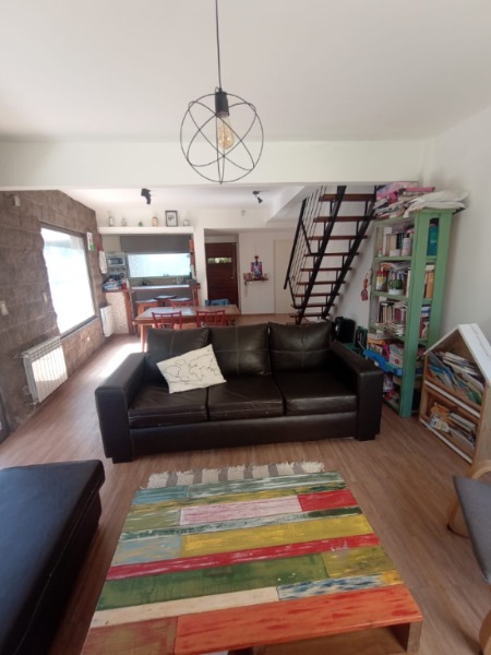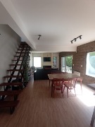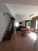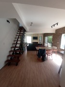 Amplio living comedor con ventanales al frente y al parque, cocina semi integrada por barra, garage cubierto y pasante , amplio parque con parrilla, baño completo