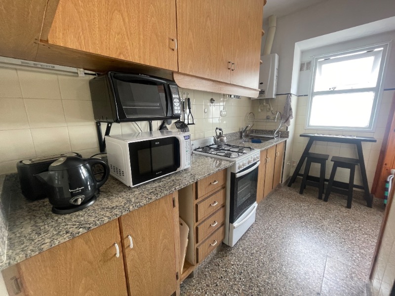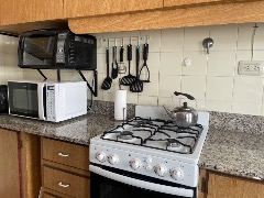 Cocina completa con pava electrica, microondas, horno electrico. Cocina con horno a gas