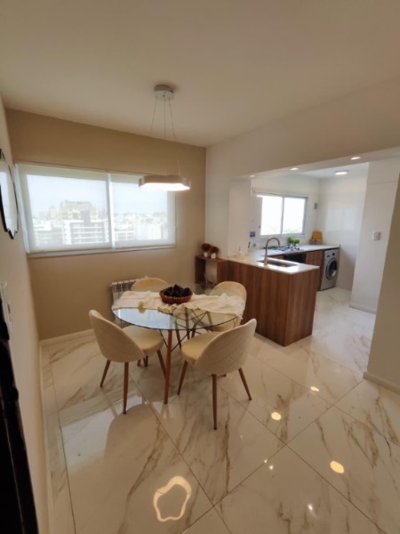 Departamento de 2 ambientes, muy lumninoso, en un punto priviligiado de la ciudad de Mar del Plata, Bolivar y Buenos Aires, al alcance de todo, con vista panoramica en un piso alto, se puede apreciar hasta La Sierra de los Padres, tiene vigilancia las 24 hs. Ademas cuenta con una baulera de importantes dimensiones, esta todo recilado, Impecable su estado, la cocina con ventilacion natural, barra desayunadora y gran ventanal con balcon frances, living-comedor muy aplio, con un espacio ideal e intimo para ubicar un sofa cama o cama rebatible, sin alterar la disposicion y prolijidad del ambiente. Ideal para primer hogar o compra para renta, ya que su ubicacion y estado lo hacen inmensamente rentable.