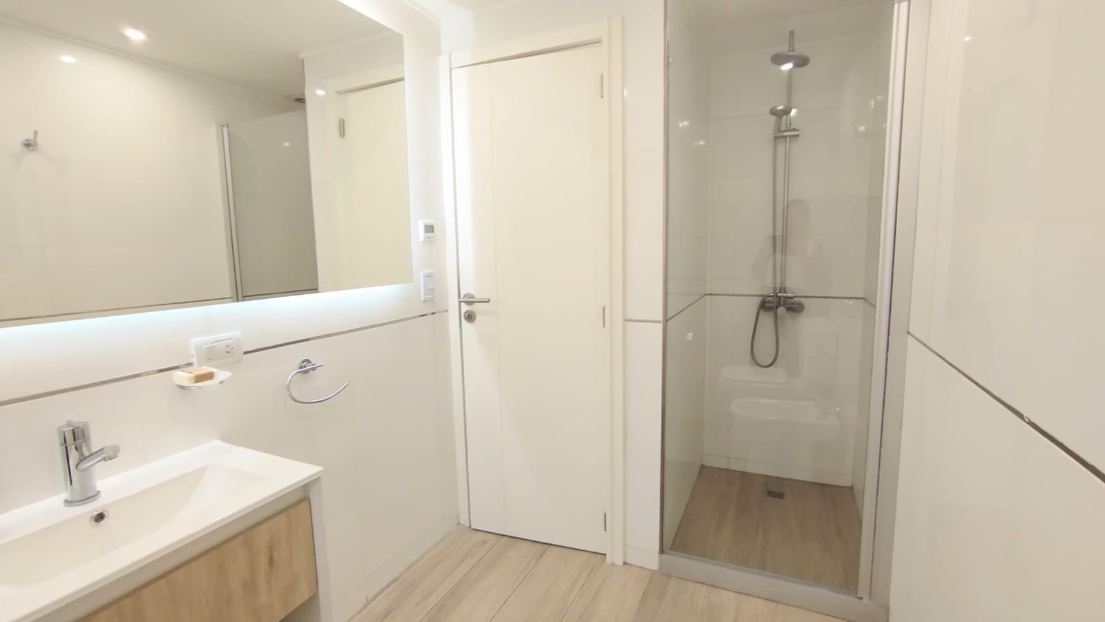 BAÑO PRINCIPAL COMPLETO CON MAMPARA CORREDIZA VIDRIO TEMPLADO, ESPEJO LED BAÑO DE SERVICIO O TOILLET
