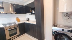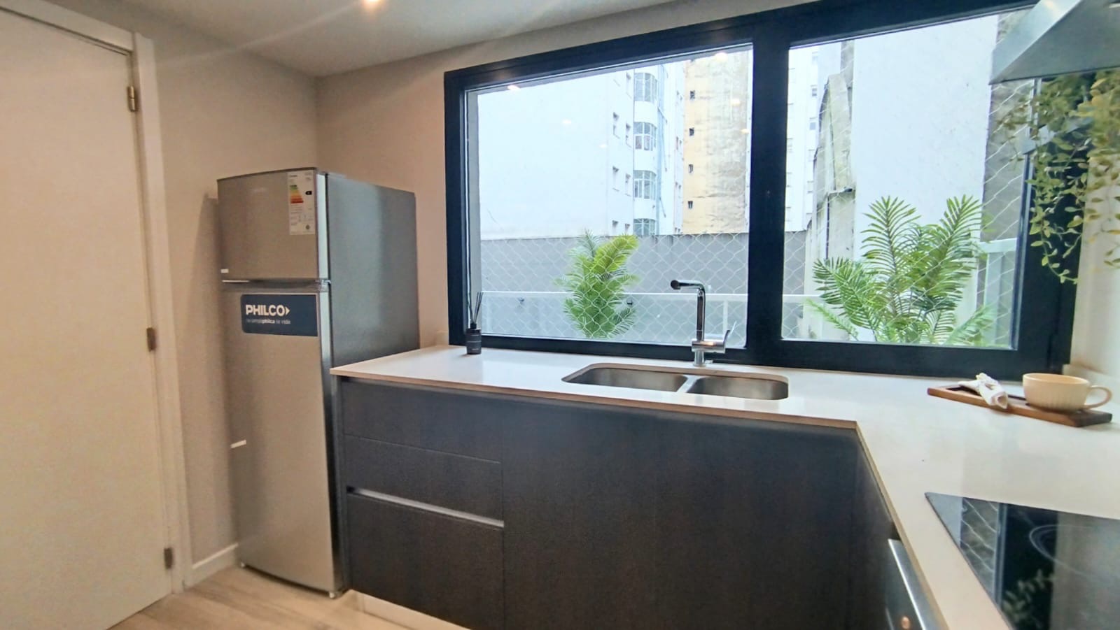 AMPLIA COCINA EQUIPADA CON COCINA, HELADERA CON FREZZER Y DISPENSER, CAMPANA DE ACERO INOXIDABLE CON EXTRACTOR Y LUZ LED, LAVARROPAS