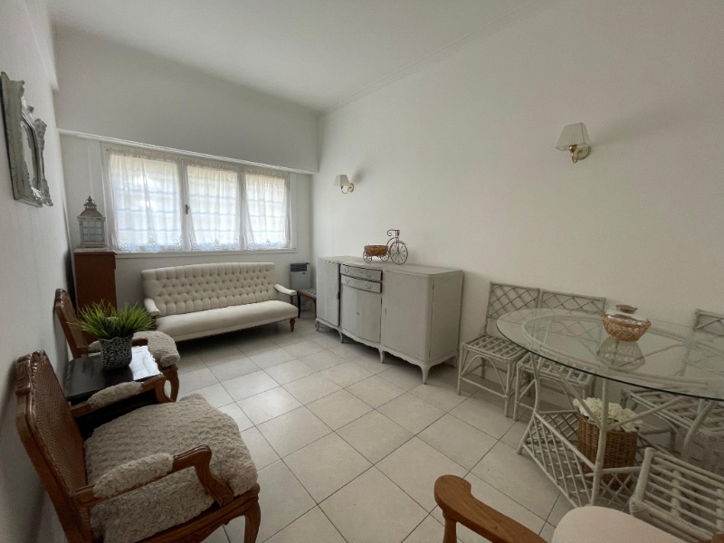 Ambiente dividido con amplio ventanal de piso a techo súper luminoso, cama sommier a estrenar de dos plazas, resplado de cama con mesas de luz incorporadas, mesa con 4 sillas a estrenar, rac con TV Smart 32 pulgadas nuevo, placa caloventor nueva, plantas, acolchado y decoración.