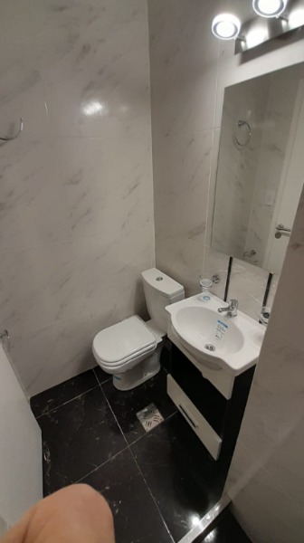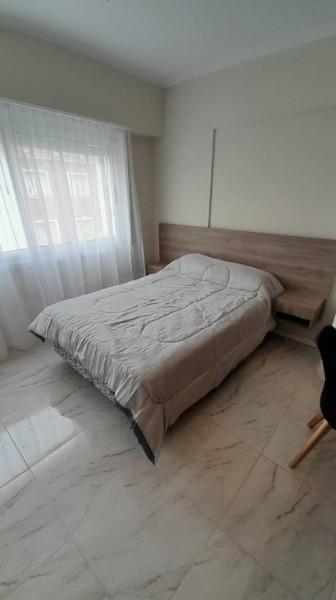 El ingreso es a recibidor, que nos da paso al living comedor con ventanal y balcón francés y a la cocina ciega, con espacio de lavarropas, continuada por una dependencia de servicio con toilette y entrada de servicio.