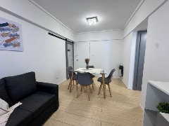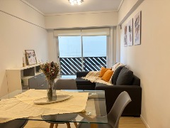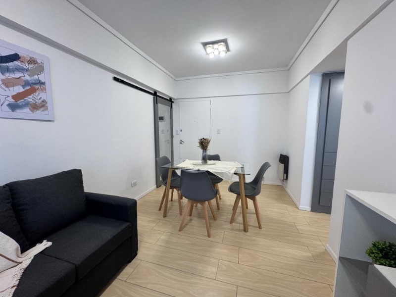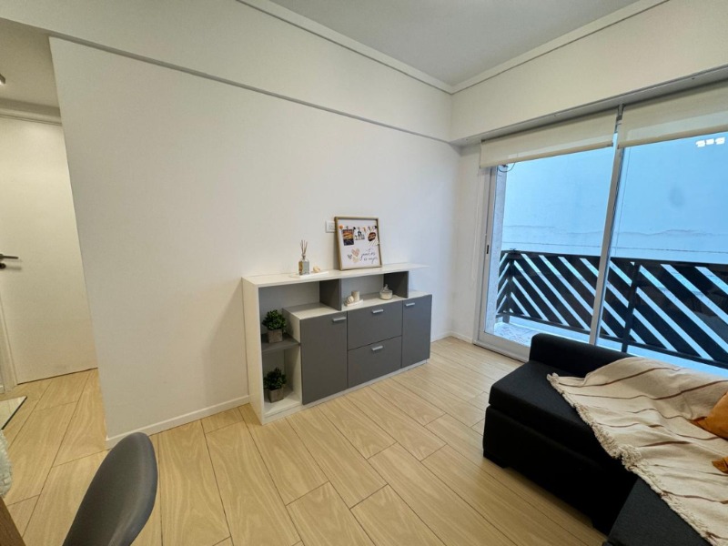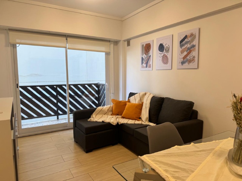 Living comedor a la calle con amplio ventanal y balcón francés.