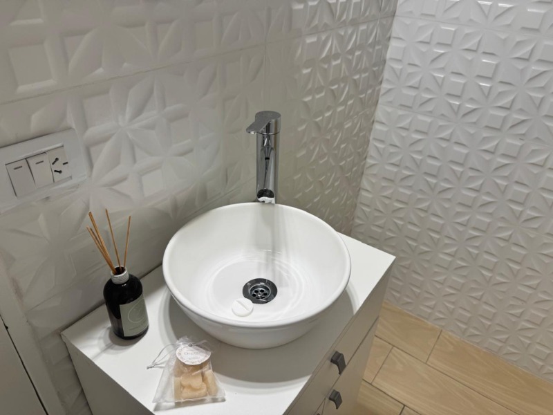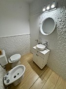 Baño principal completo, revestido en porcelanatos y cerámicos hace 9 años.