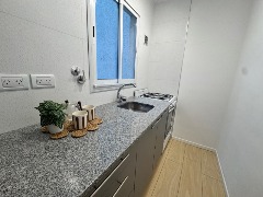 Cocina separada con espacio para lavarropas, y ventilación natural, al frente.