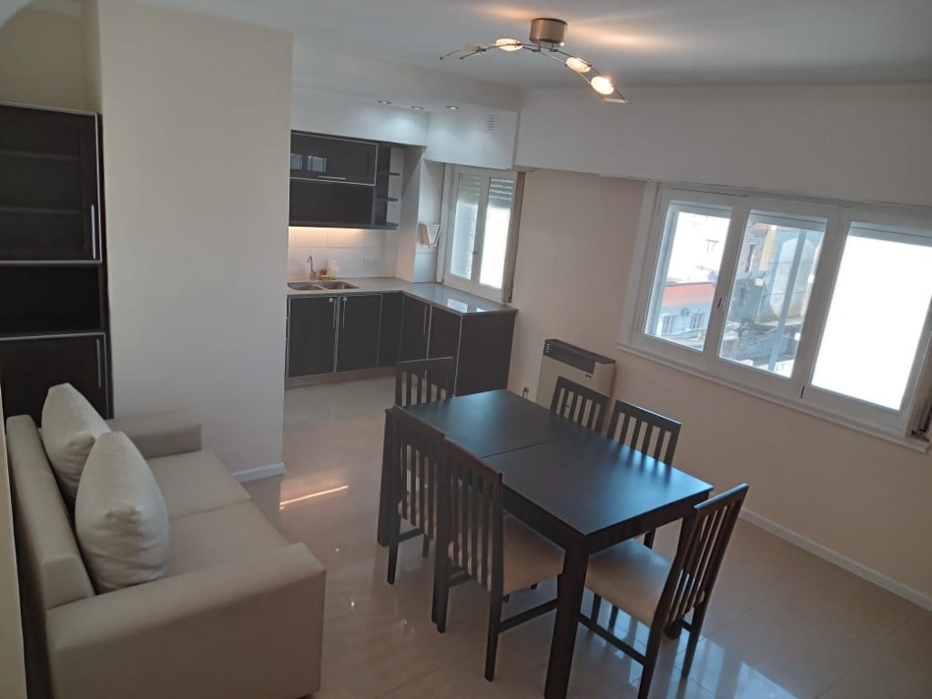 Departamento de 2 ambientes, muy lumninoso, en un punto priviligiado de la ciudad de Mar del Plata, Bolivar y Buenos Aires, al alcance de todo, con vista panoramica en un piso alto, se puede apreciar hasta La Sierra de los Padres, tiene vigilancia las 24 hs. Ademas cuenta con una baulera de importantes dimensiones, esta todo recilado, Impecable su estado, la cocina con ventilacion natural, barra desayunadora y gran ventanal con balcon frances, living-comedor muy aplio, con un espacio ideal e intimo para ubicar un sofa cama o cama rebatible, sin alterar la disposicion y prolijidad del ambiente. Ideal para primer hogar o compra para renta, ya que su ubicacion y estado lo hacen inmensamente rentable.