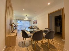 Cocina comedor separada equipada con lavarropas, heladera, horno y anafe. Ventilación natural