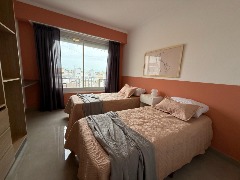 Departamento de 3 ambientes a la calle en zona centro , consta de living - comedor con balcon saliente y vista al mar, prImer dormitorio en suite con baño completo y vestidor, segundo dormitorio al contrafrente, toilette, tercer baño con ducha,cocina comedor equipada con heladera con freezer y lavarropas, posee calefaccion por radiadores, y doble vidrio en todos sus ambientes, esta unidad se entrega totalmente amoblado y decorado con excelente gusto.