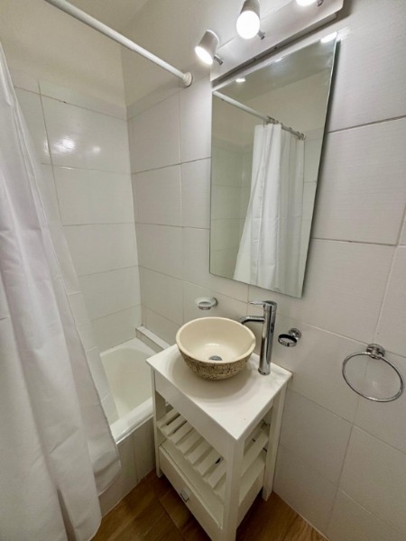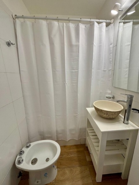 Tiene baño completo. el departamento se encuebtra amoblado y con Cortinas sunscreen de bandas.