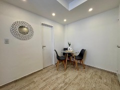 Posee cocina comedor con mesadas de granito negro Brasil, y amoblamientos a medida, equipada con purificador de aire, cocina y heladera.