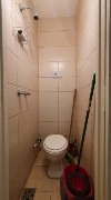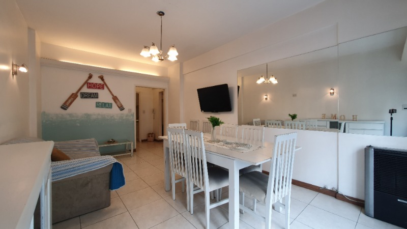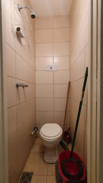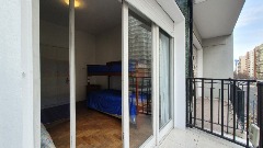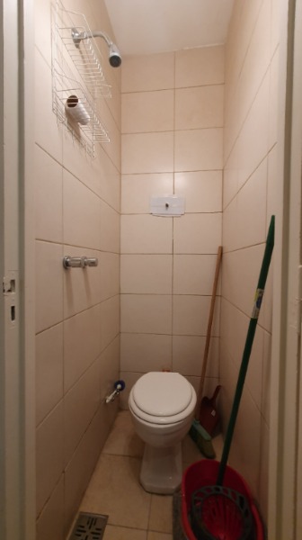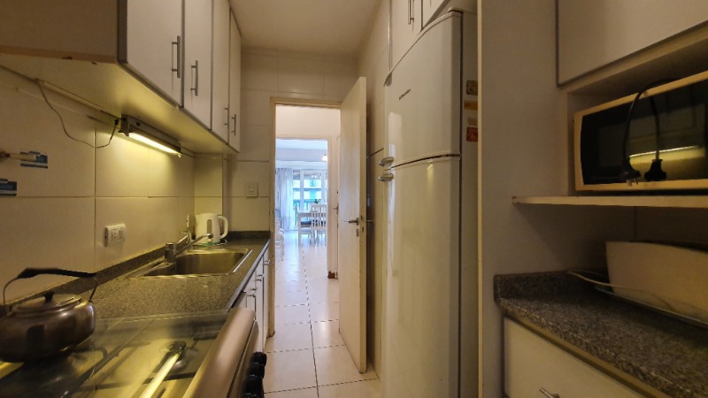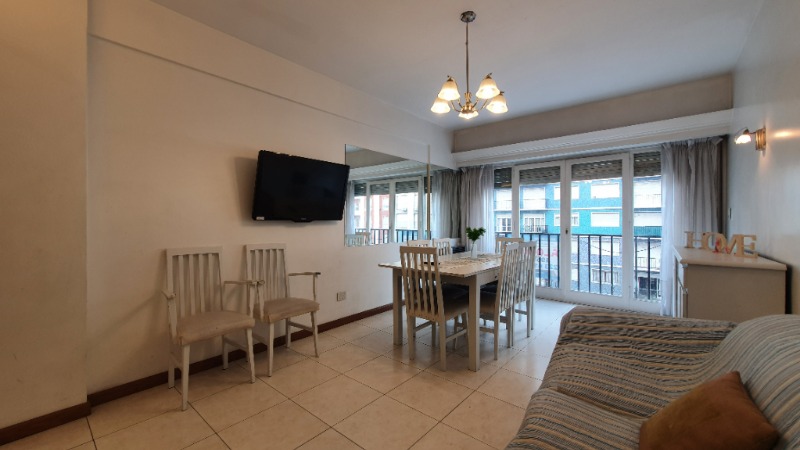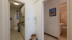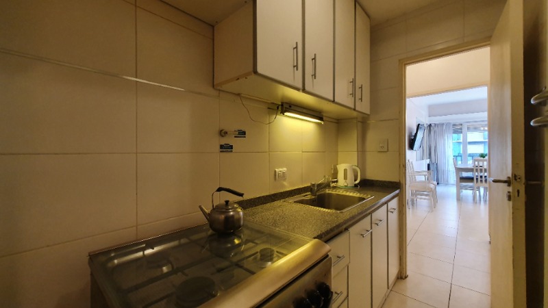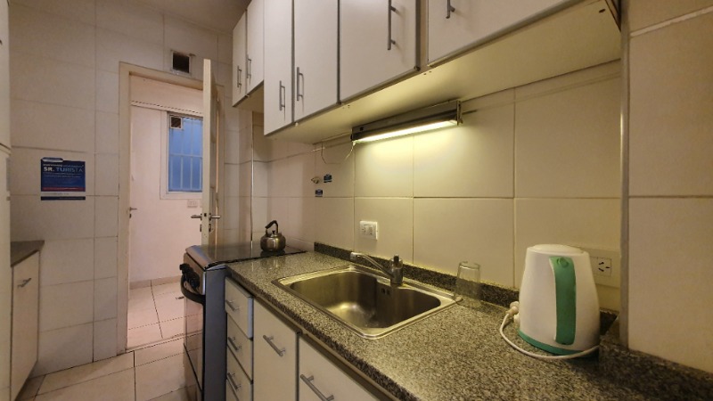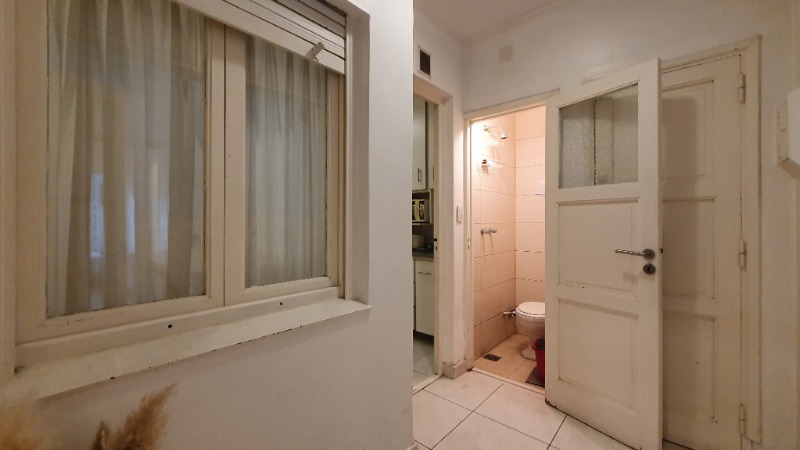 El ingreso es a recibidor, que nos da paso al living comedor con ventanal y balcón francés y a la cocina ciega, con espacio de lavarropas, continuada por una dependencia de servicio con toilette y entrada de servicio.