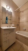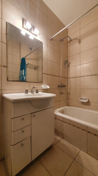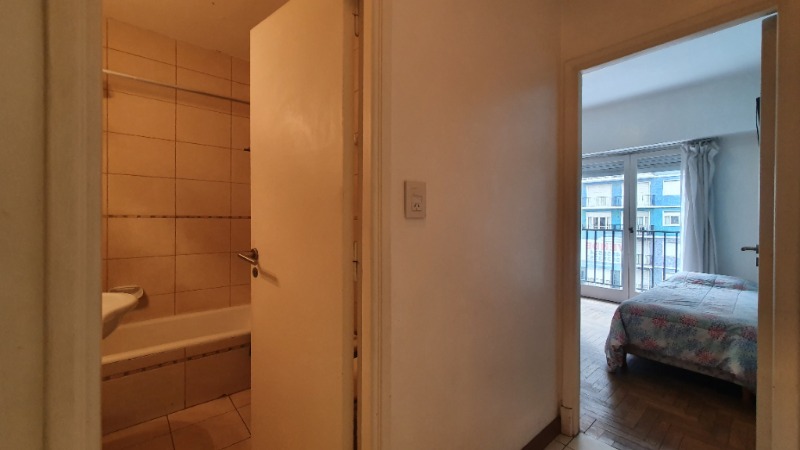Mediante pasillo distribuidor encontramos dos dormitorios con piso parquet plastificado y placard empotrado, uno de ellos a la calle con balcón, y en medio de ellos se encuentra el baño completo con bañera.