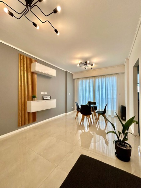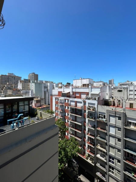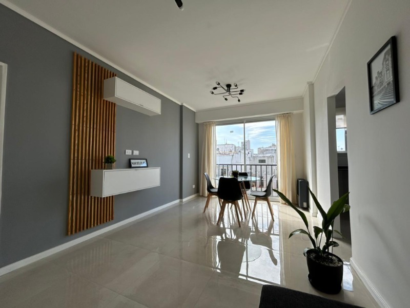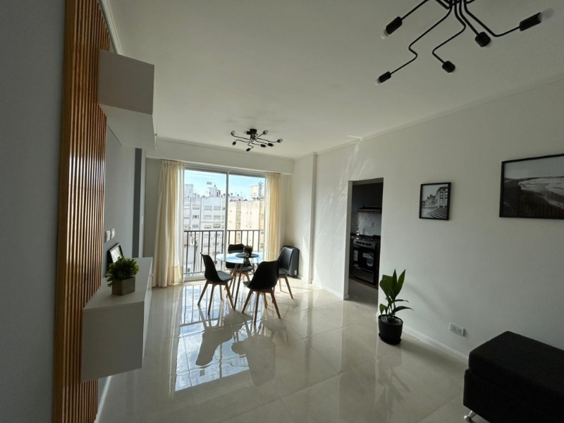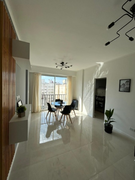 Living comedor a la calle con amplio ventanal y balcón francés.